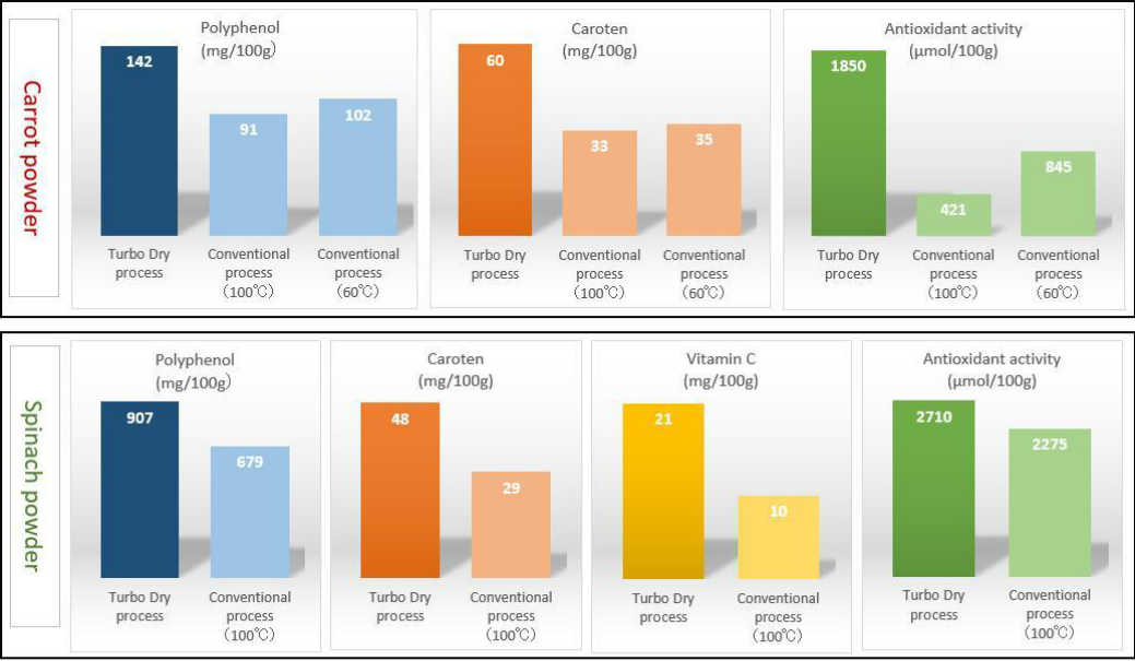 Turbo Dry processed Vegepowders contain many more active ingredients than conventional vegetable powder.